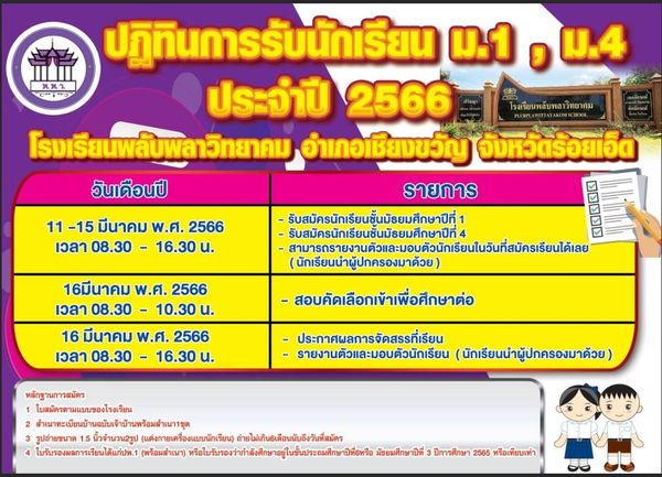 ?ประกาศปฏิทินการรับสมัครนักเรียน ม.1และม.4 ?ประจำปีการศึกษา 2566