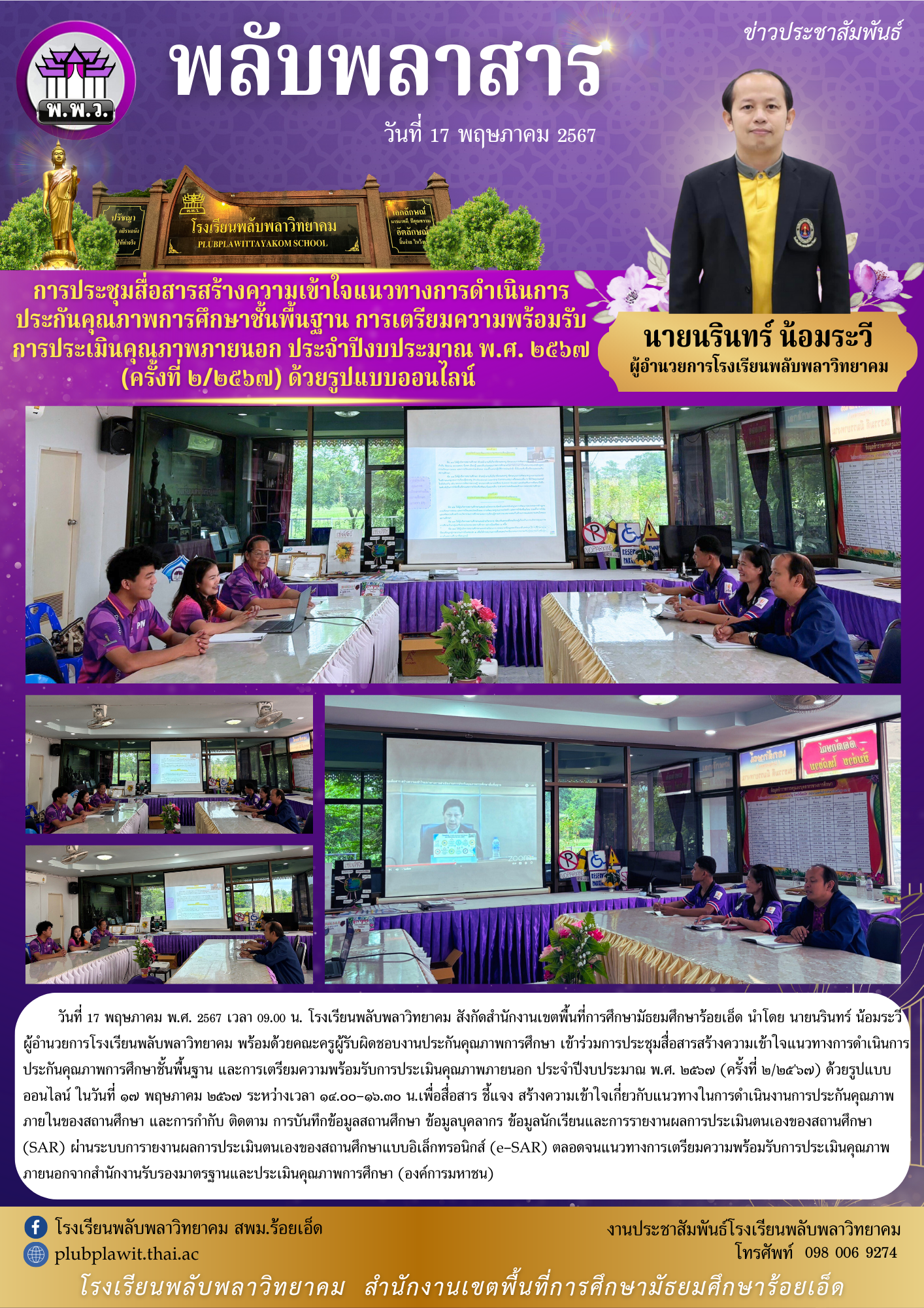 การประชุมสื่อสารสร้างความเข้าใจแนวทางการดำเนินการประกันคุณภาพการศึกษาชั้นพื้นฐาน การเตรียมความพร้อมรับการประเมินคุณภาพภายนอก ประจำปีงบประมาณ พ.ศ. ๒๕๖๗ (ครั้งที่ ๒/๒๕๖๗) ด้วยรูปแบบออนไลน์