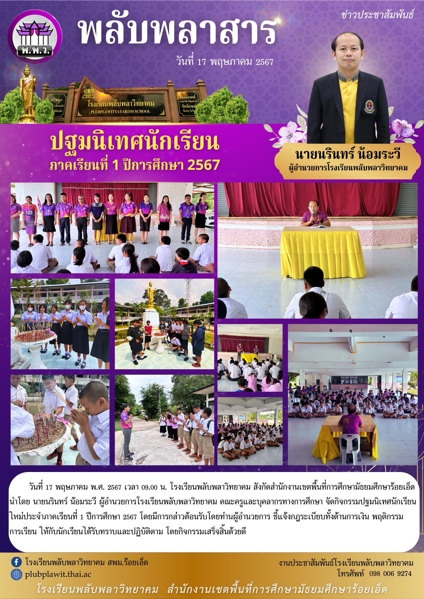 ปฐมนิเทศนักเรียน ภาคเรียนที่ 1 ปีการศึกษา 2567