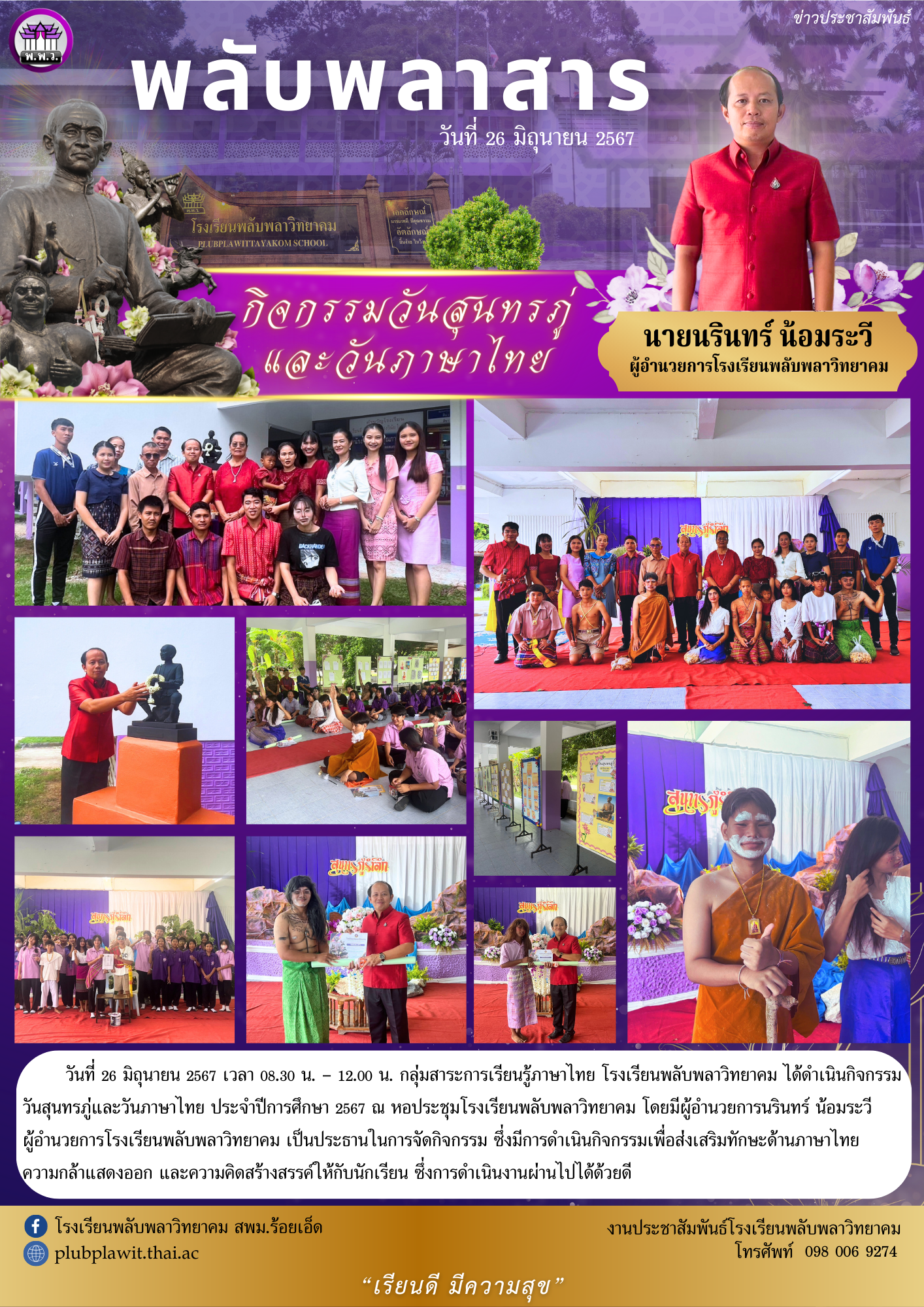 กิจกรรมวันสุนทรภู่ และวันภาษาไทย