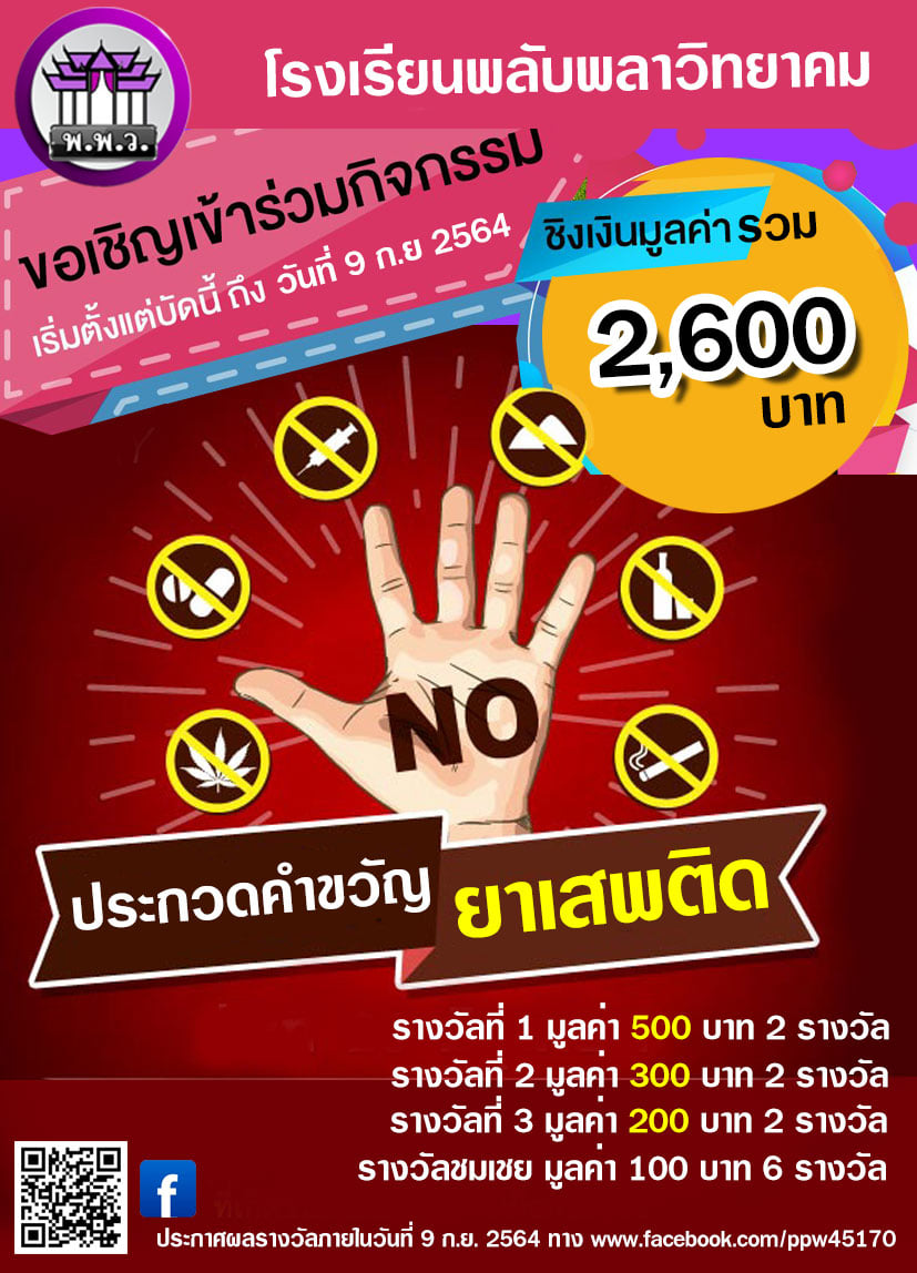 ขอเชิญนักเรียนทุกคน เข้าร่วมกิจกรรมประกวด "คำขวัญต่อต้านยาเสพติด"