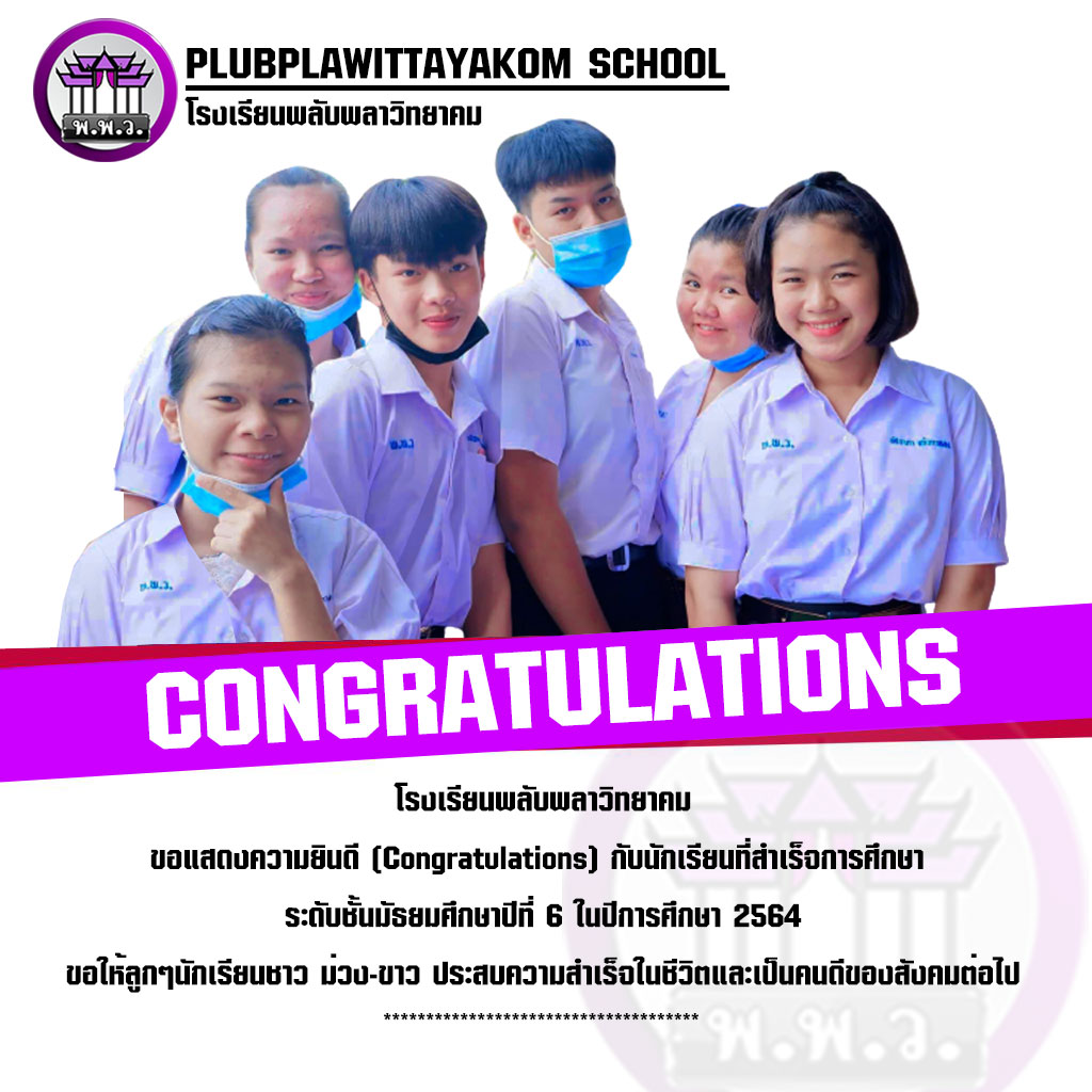 ขอแสดงความยินดี (Congratulations) กับนักเรียนที่สำเร็จการศึกษา ระดับชั้นมัธยมศึกษาปีที่ 6