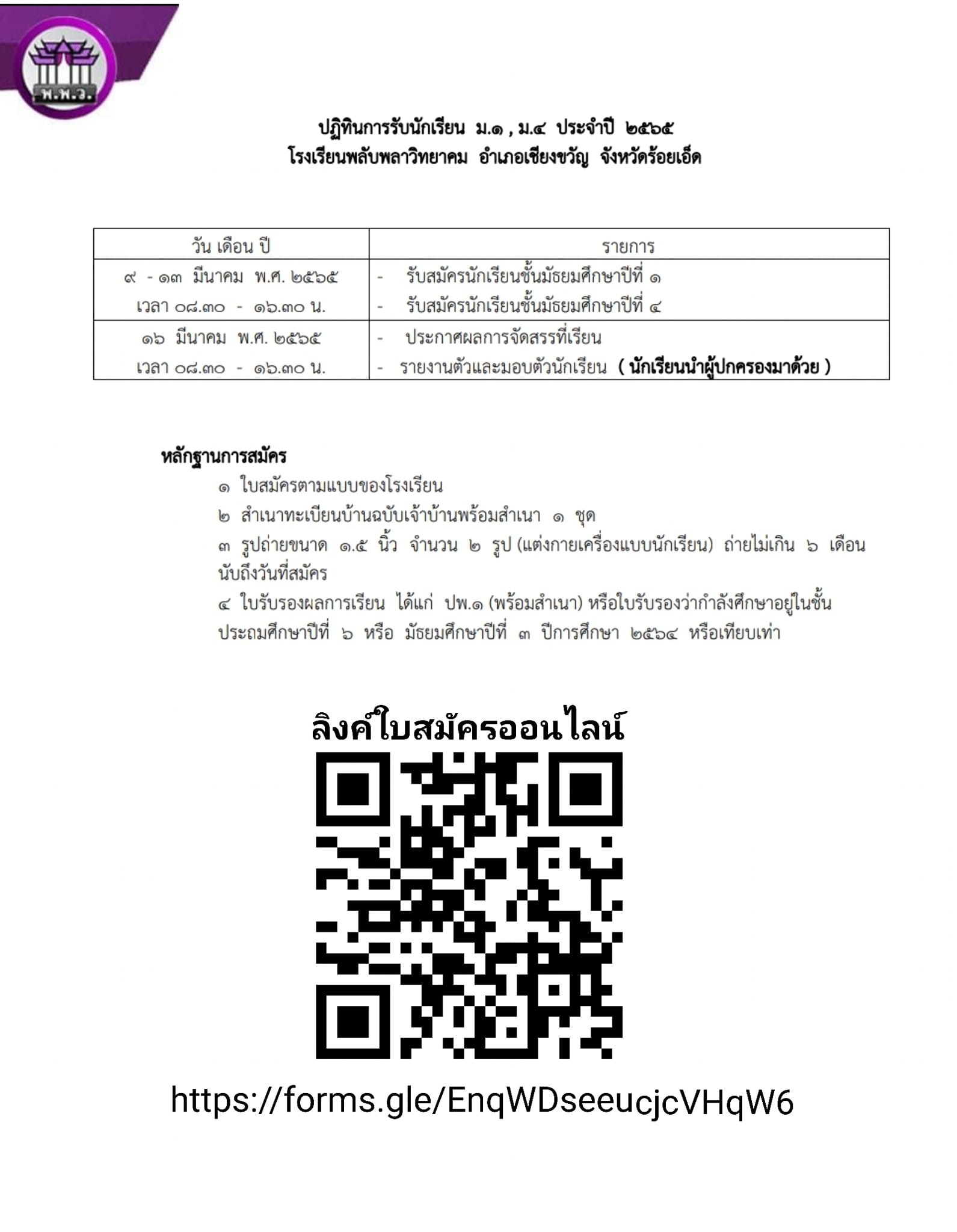 #ประกาศโรงเรียนพลับพลาวิทยาคม